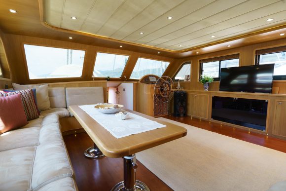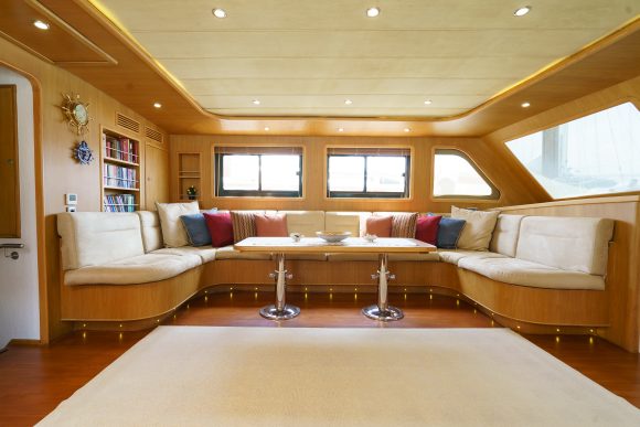 Tekne içindeki kapalı alanlarda; salonda ve kamaralarda sigara içilmesine izin verilmemektedir. Sigara içen misafirlerimiz açık alanda içebilirler.